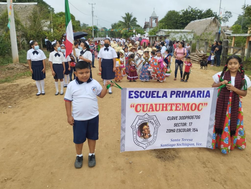 Por un lado, En la localidad de Santa Teresa en el municipio de Santiago Sochiapan se 6 escuelas con la participación de cerca de 600 alumnos marcharon en las calles portando adornos patrios.