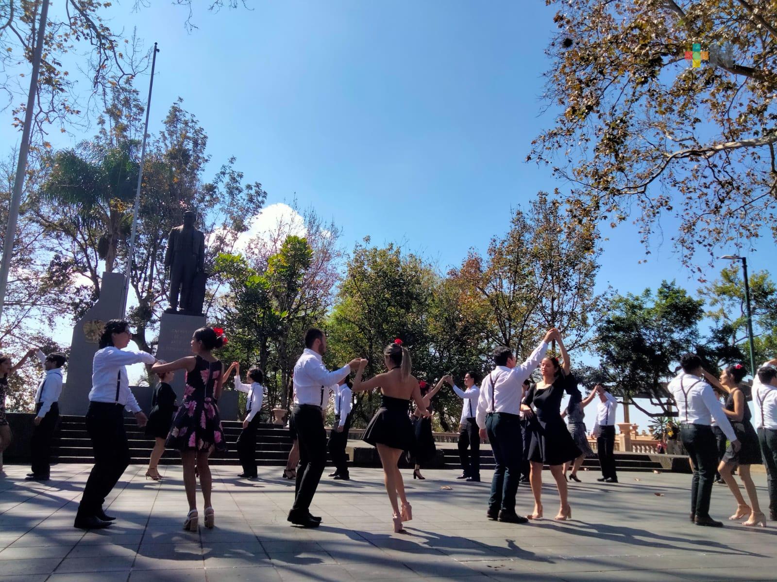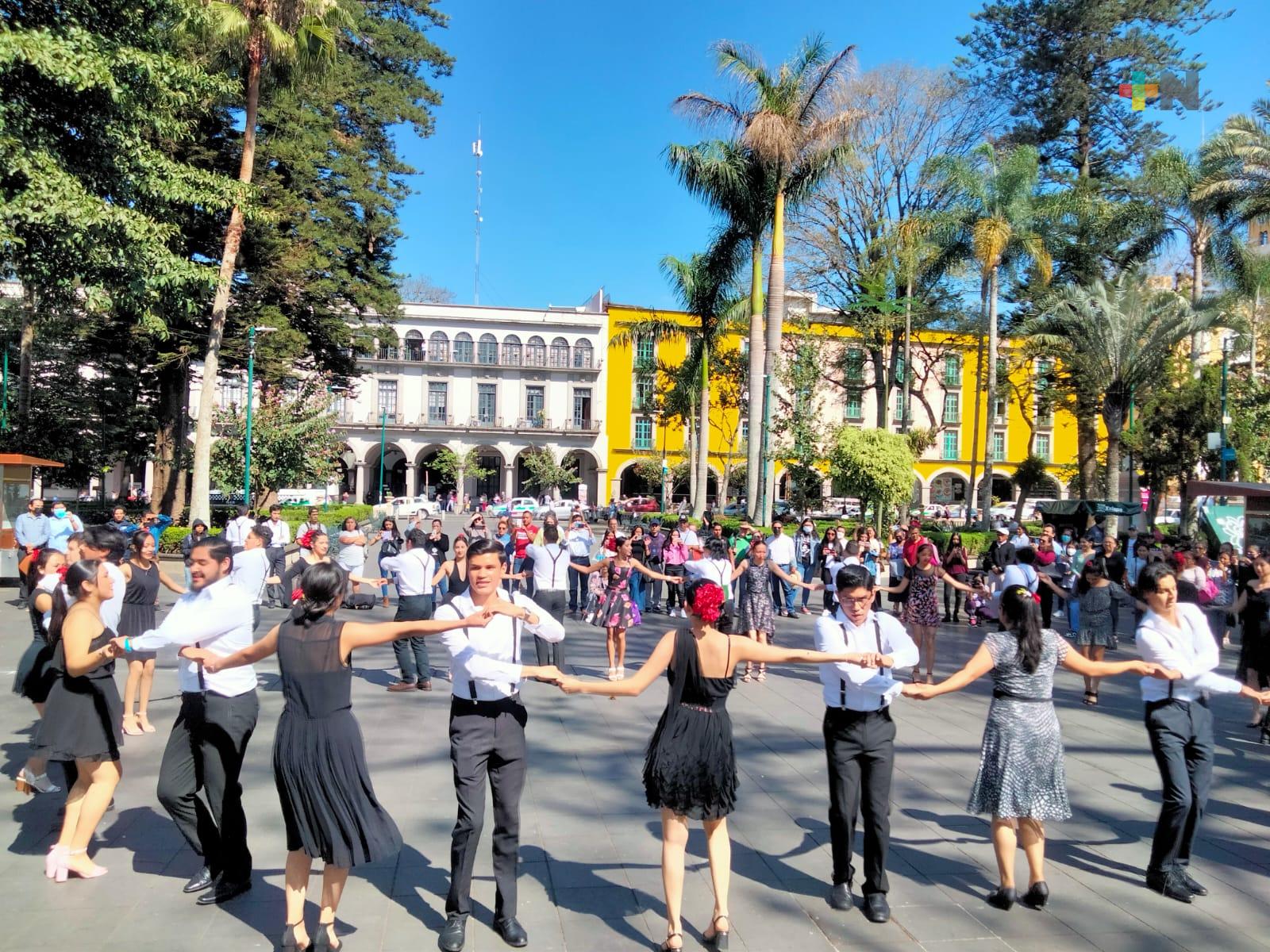 Xalapa, Ver.- Al ritmo de merengue, danzón y salsa, estudiantes de la Universidad Veracruzana (UV) hicieron gala en la explanada del parque Juárez, en el centro de Xalapa, de su talento y gusto por el baile de salón.