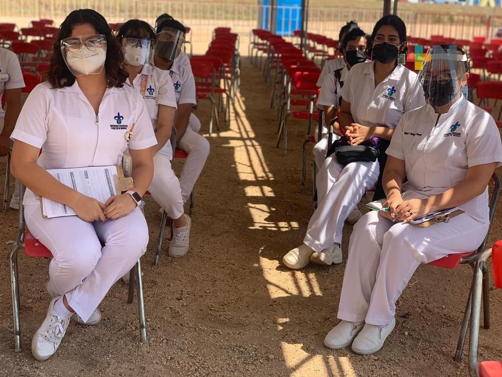 Estudiantes de Medicina de la UV apoyan durante aplicación de segunda dosis contra coronavirus, en Coatzacoalcos