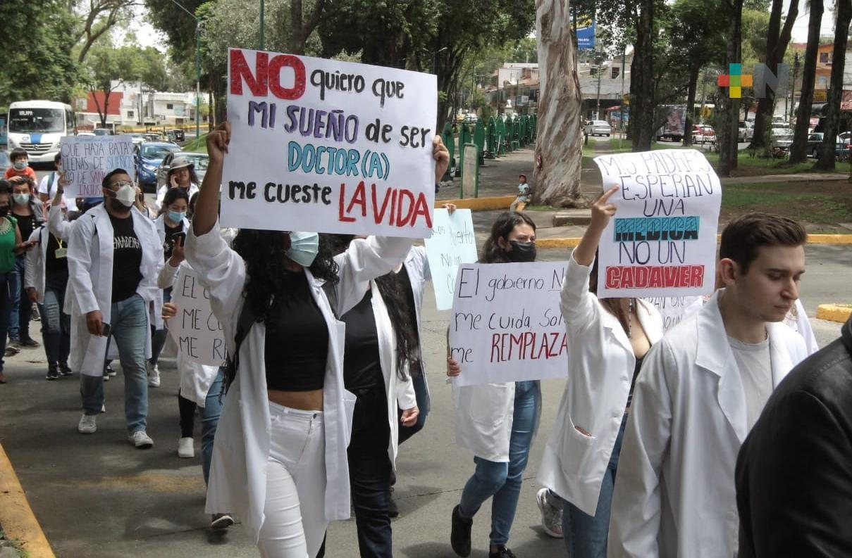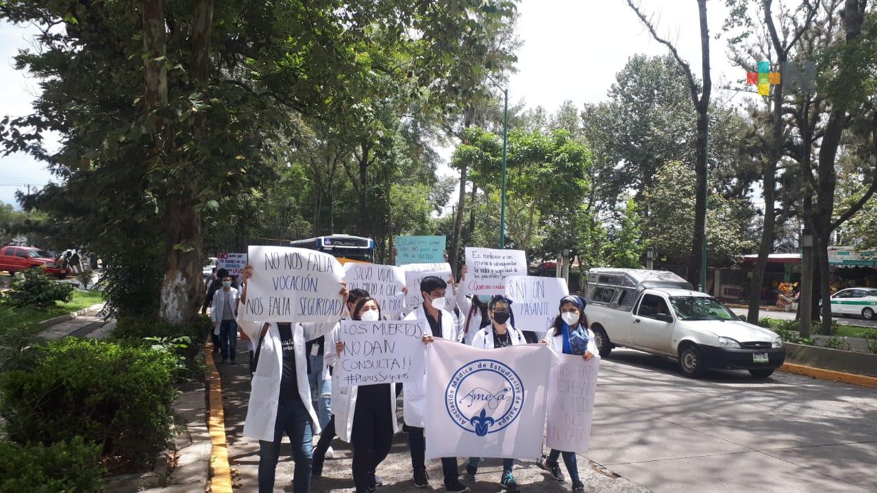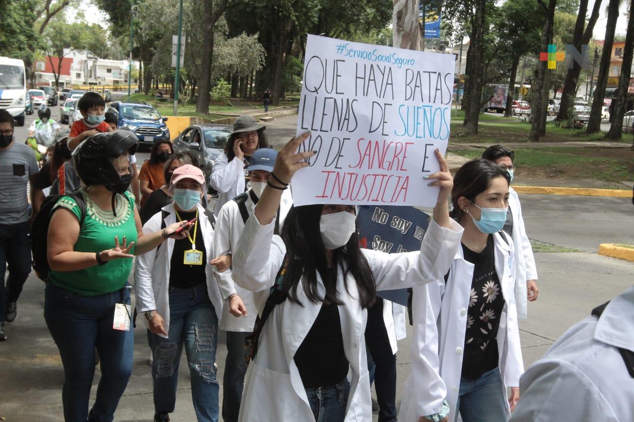 Xalapa, Ver.- Estudiantes de la Facultad de Medicina de la Universidad Veracruzana (UV) marcharon este miércoles en Xalapa para pedir a las autoridades educativas, que sean seguros los lugares donde sean enviados a realizar su servicio social.