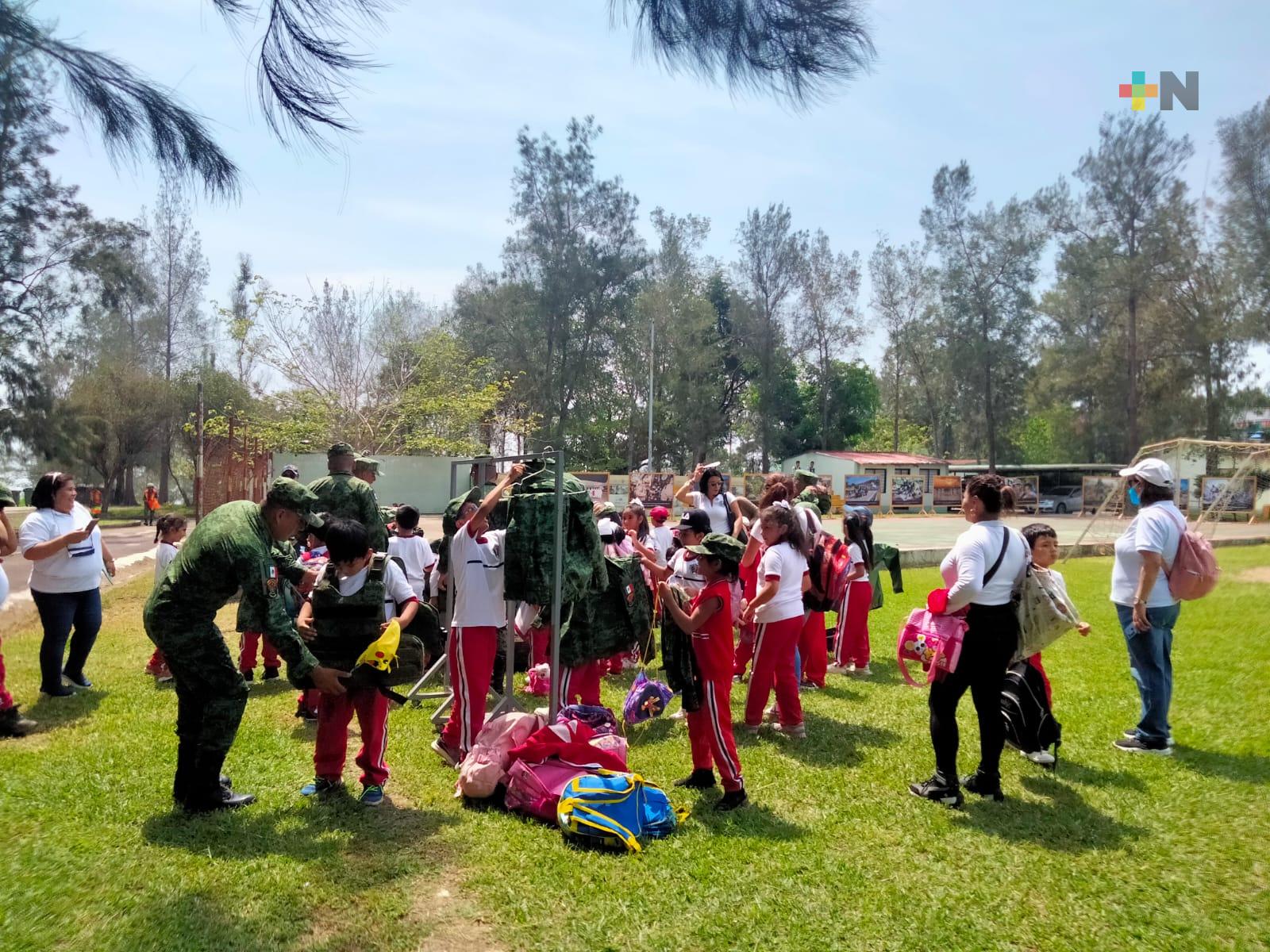 Los docentes de esta primaria federal ubicada en una zona de la periferia de Xalapa destacaron los valores que brinda conocer y compartir actividades con el Ejército Mexicano.
