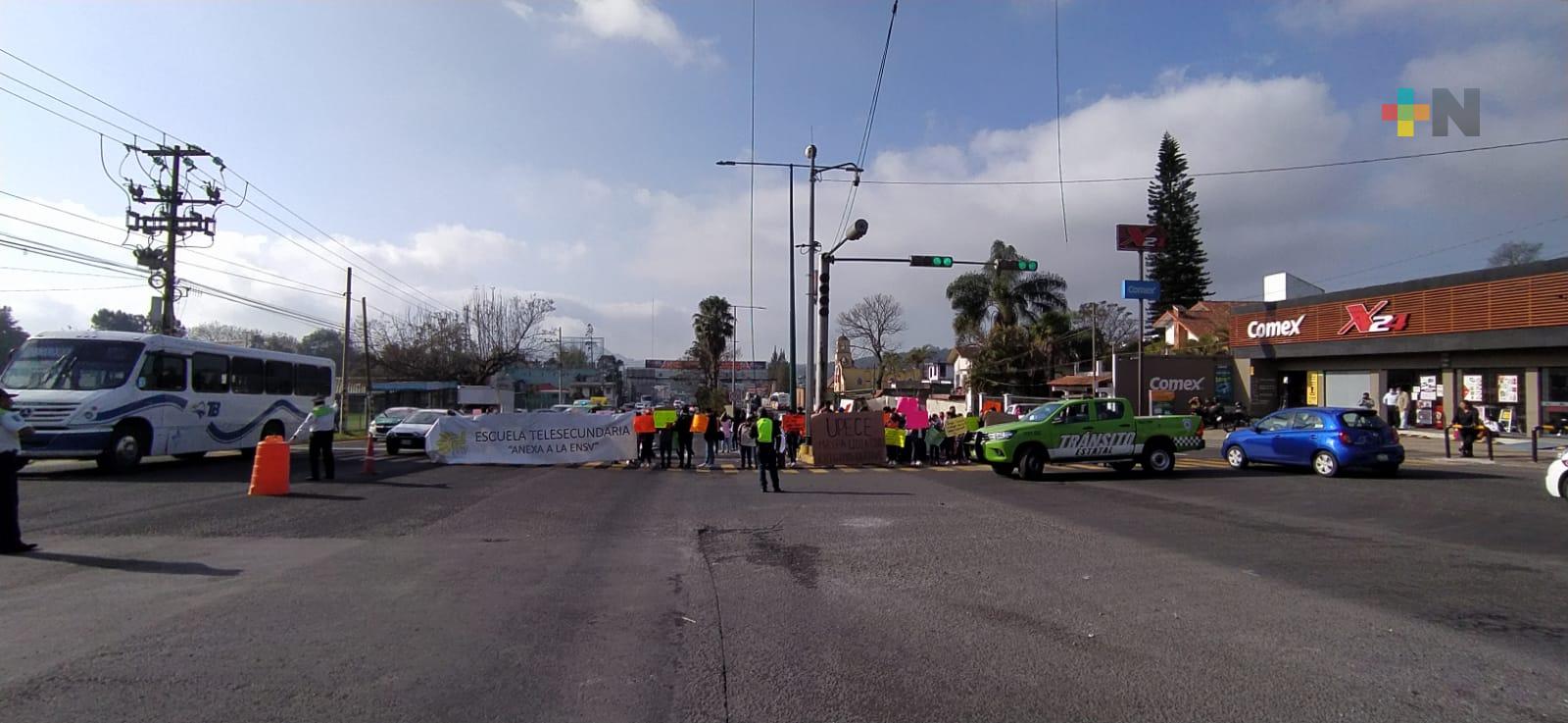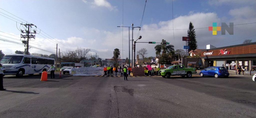 Xalapa, Ver.- Cierre parcial del bulevar Xalapa-Banderilla a la altura del Deportivo de la colonia 21 de marzo por parte de estudiantes y padres de familia de la Escuela Telesecundaria anexa a la Normal «Manuel Suárez Trujillo».