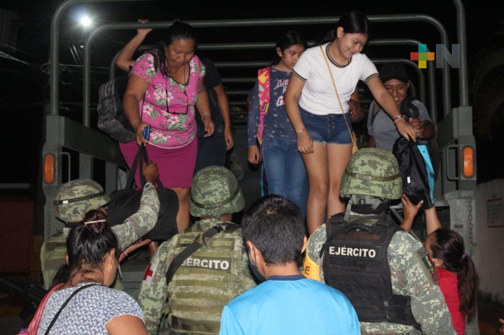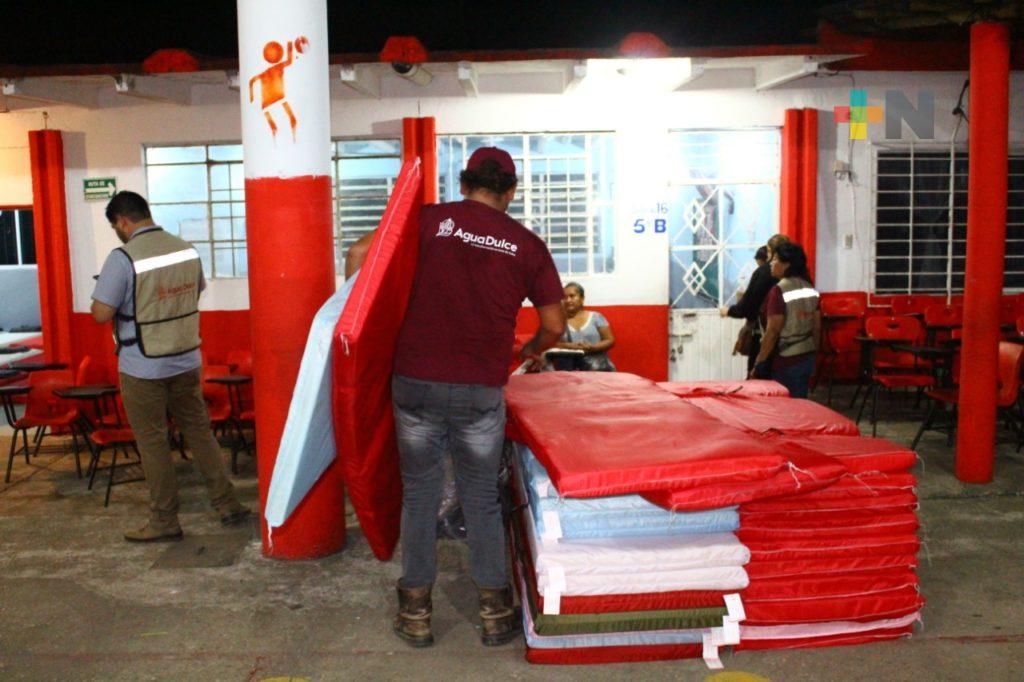 Mientras que los pobladores fueron trasladados a tres albergues temporales habilitados por el Ayuntamiento de Agua Dulce, encabezado por el alcalde Noe Castillo Olvera. Dichos espacios fueron ubicados en la Escuela Primaria Guadalupe Victoria y el Centro Cultural Manuel Sastré, ambos en la colonia Benito Juárez, así como la Primaria Cuauhtémoc de la colonia Nueva del Río.