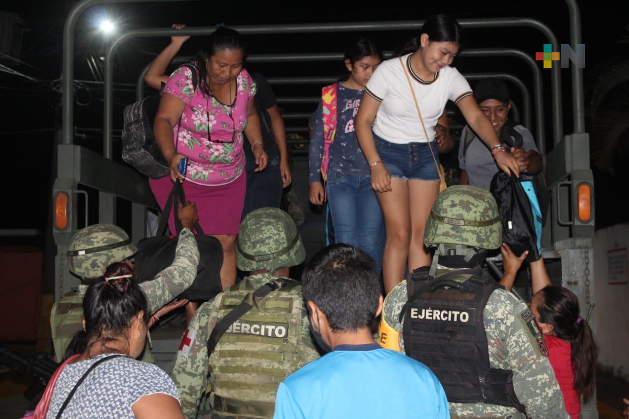 Mientras que los pobladores fueron trasladados a tres albergues temporales habilitados por el Ayuntamiento de Agua Dulce, encabezado por el alcalde Noe Castillo Olvera. Dichos espacios fueron ubicados en la Escuela Primaria Guadalupe Victoria y el Centro Cultural Manuel Sastré, ambos en la colonia Benito Juárez, así como la Primaria Cuauhtémoc de la colonia Nueva del Río.