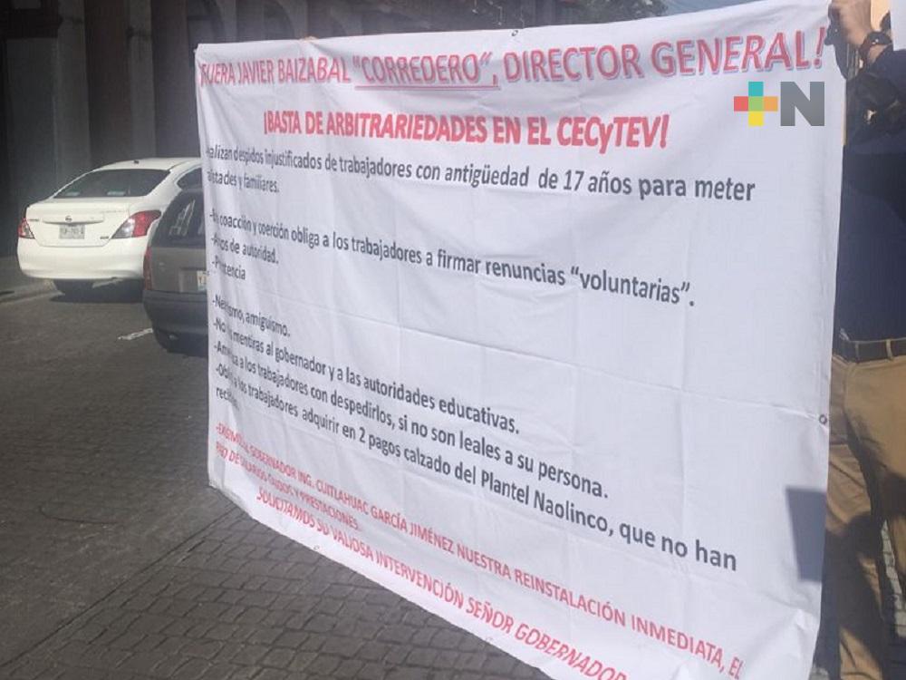 Extrabajadores de CECYTEV exigen reinstalación a sus puestos de trabajo, denuncian despido injustificado