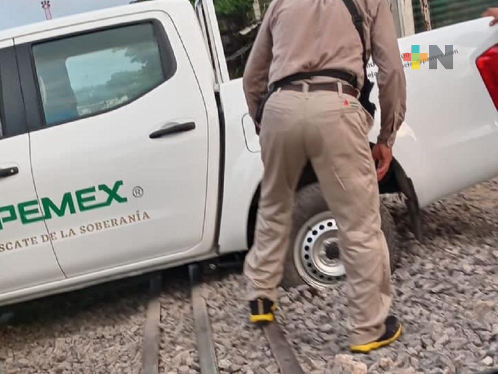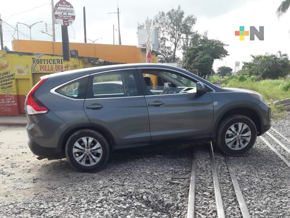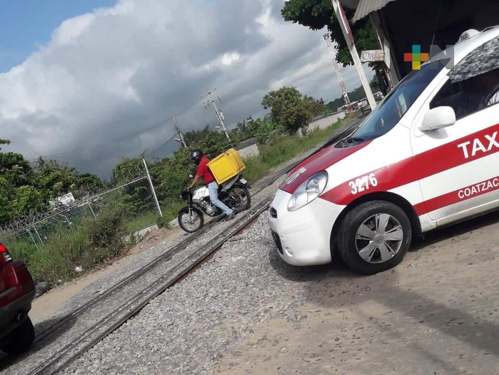 Exceso de balasto impide paso de automóviles por vías del tren en Coatzacoalcos