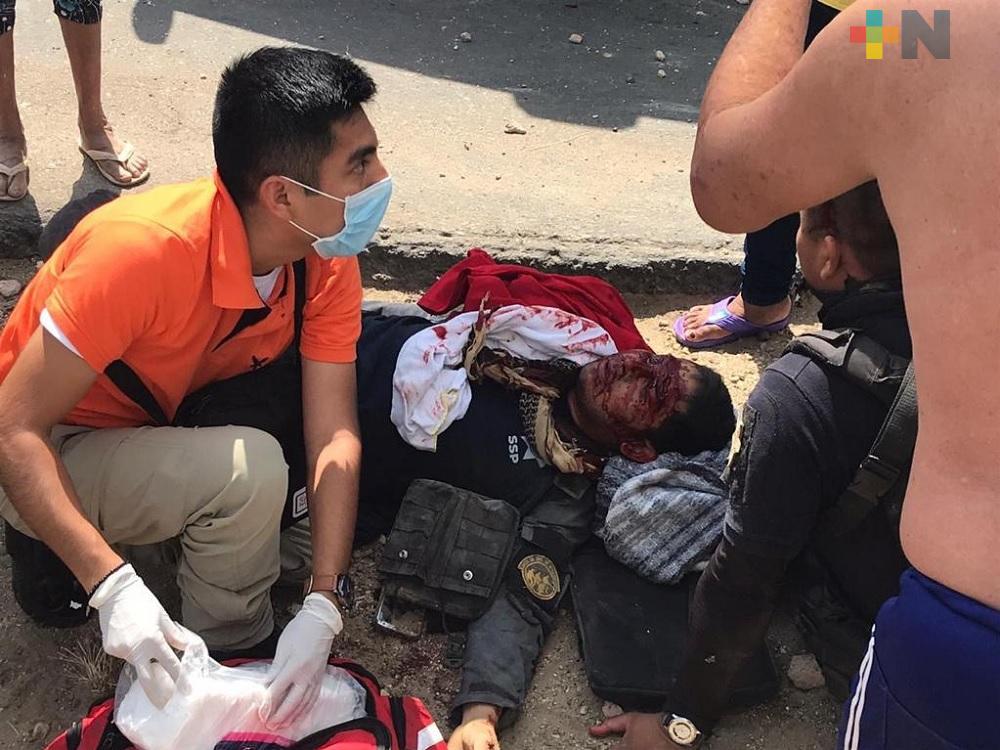 Al lugar arribaron paramédicos de la Cruz Roja y Protección Civil quienes brindaron los primeros auxilios a los lesionados entre ellos al conductor del taxi y una pasajera de la tercera edad, así como a elementos policíacos.
