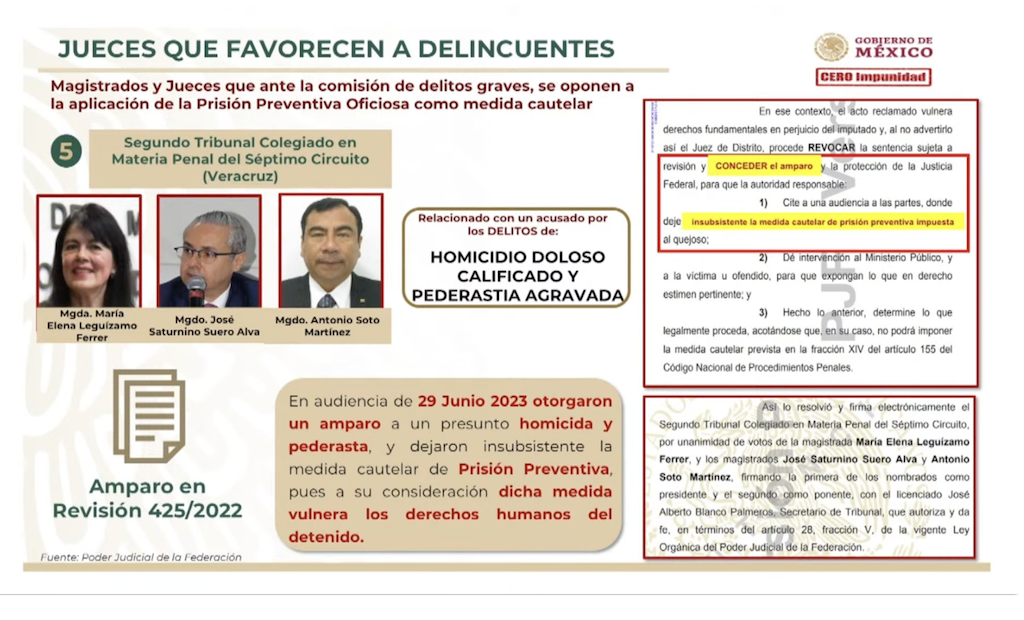 Exhiben en «La Mañanera» a jueces federales de Veracruz por liberar a delincuentes