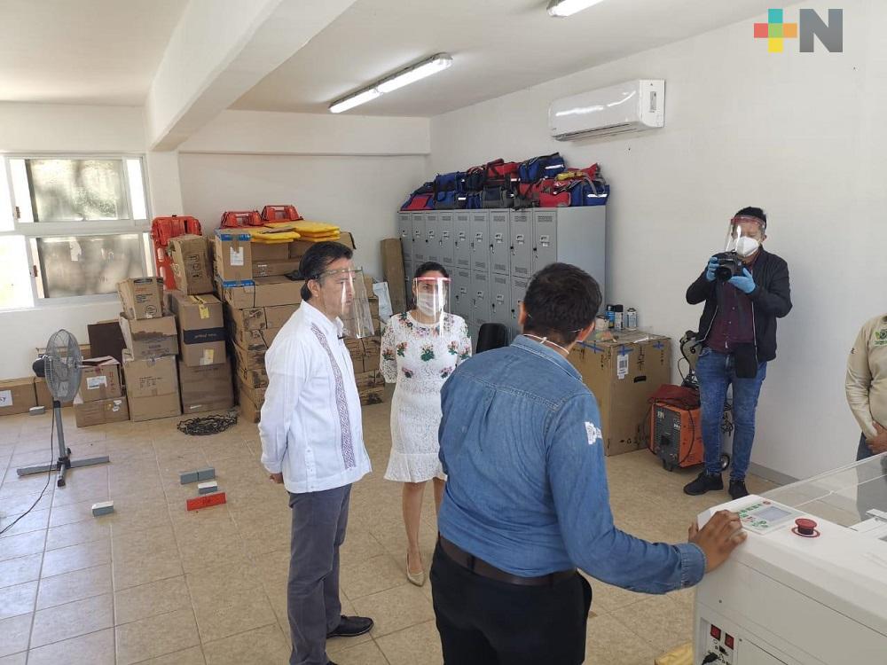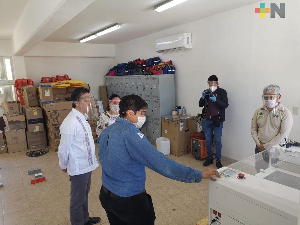 El mandatario estuvo de visita en las instalaciones del Tecnológico Nacional de México campus Coatzacoalcos, donde constató las tareas que realizan los alumnos de la institución elaborando caretas y otros insumos para personal médico que enfrenta la pandemia.