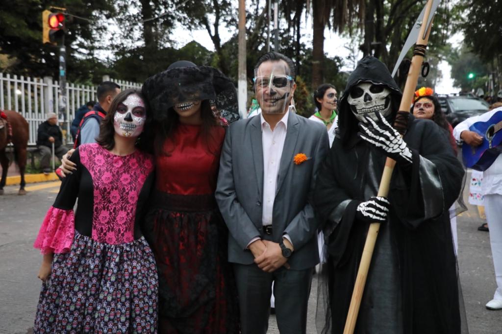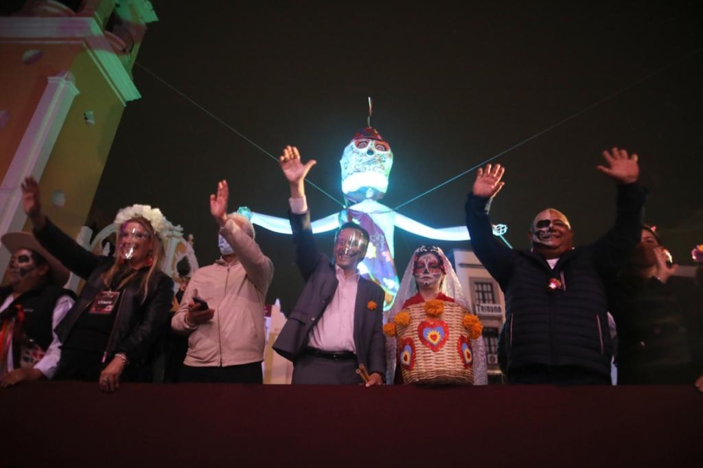 Xalapa, Ver.- Este viernes por la tarde y posterior al Desfile de Catrinas en el que participaron como espectadores, el Gobernador del estado, Cuitláhuac García y el secretario de Gobierno, Eric Cisneros Patrocinio, se llevó a cabo la inauguración de la muestra de altares en el Parque Benito Juárez de la capital del estado, la cual está conformada por veintiséis municipios del estado.