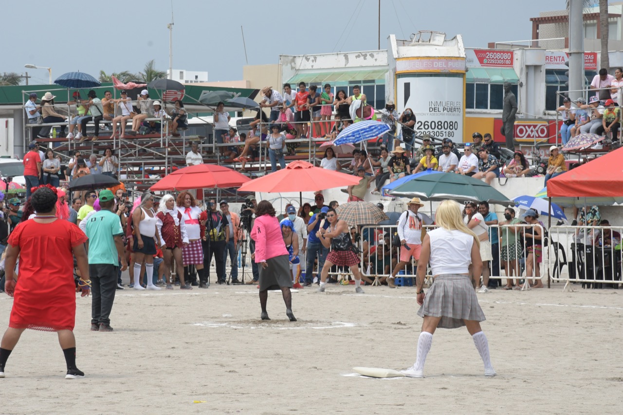 Veracruz, Ver.- En medio de un gran ambiente familiar, algarabía y ante una numerosa asistencia, este domingo se llevó a cabo el tradicional partido de béisbol “Solteras vs Casadas” en la Playa Martí de esta ciudad, con lo cual inician los festejos del Carnaval de Veracruz 2022 «El Más Alegre del Mundo».
