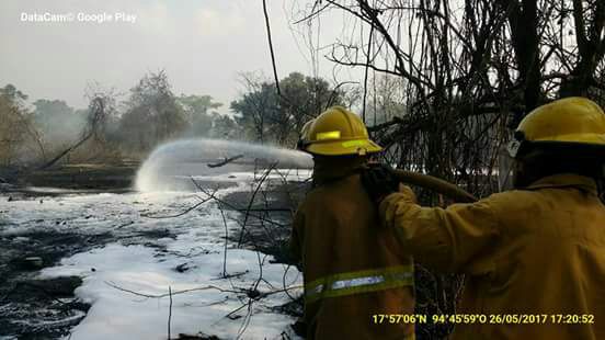 Se trató de un incendio en un pozo que fue clausurado cuando operó la empresa Azufrera Panamericana, luego de que la administrara SEDI, el brocal del tubo se pudrió y empezó a derramar chapapote. Por las altas temperaturas se prendió.