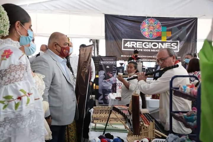 Xalapa, Ver.- Con las medidas de salud requeridas, con gran ambiente, sabor y color, el secretario de Gobierno, Eric Cisneros Burgos inauguró la Expo Artesanal y Folklórica en la Plaza Lerdo de Xalapa.