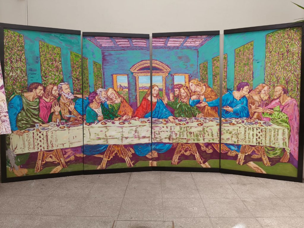La exposición está conformada por obras de gran formato, en las que reinterpreta las obras de grandes pintores como Da Vinci, Dali, Van Gogh, Jonannes Vermeer, entre otros y también pinturas propias con su autoría con su técnica, ofreciendo al espectador una experiencia envolvente de color entre el impresionismo y realismo.