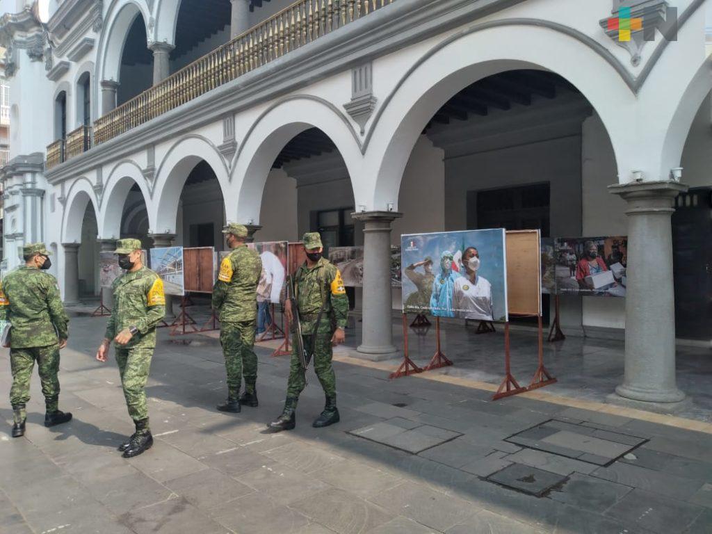 Veracruz, Ver.- Este miércoles quedó montada en los bajos del palacio municipal de Veracruz la exposición fotográfica “Febrero, mes del ejército y fuerza aérea” de la Secretaría de la Defensa Nacional (Sedena).