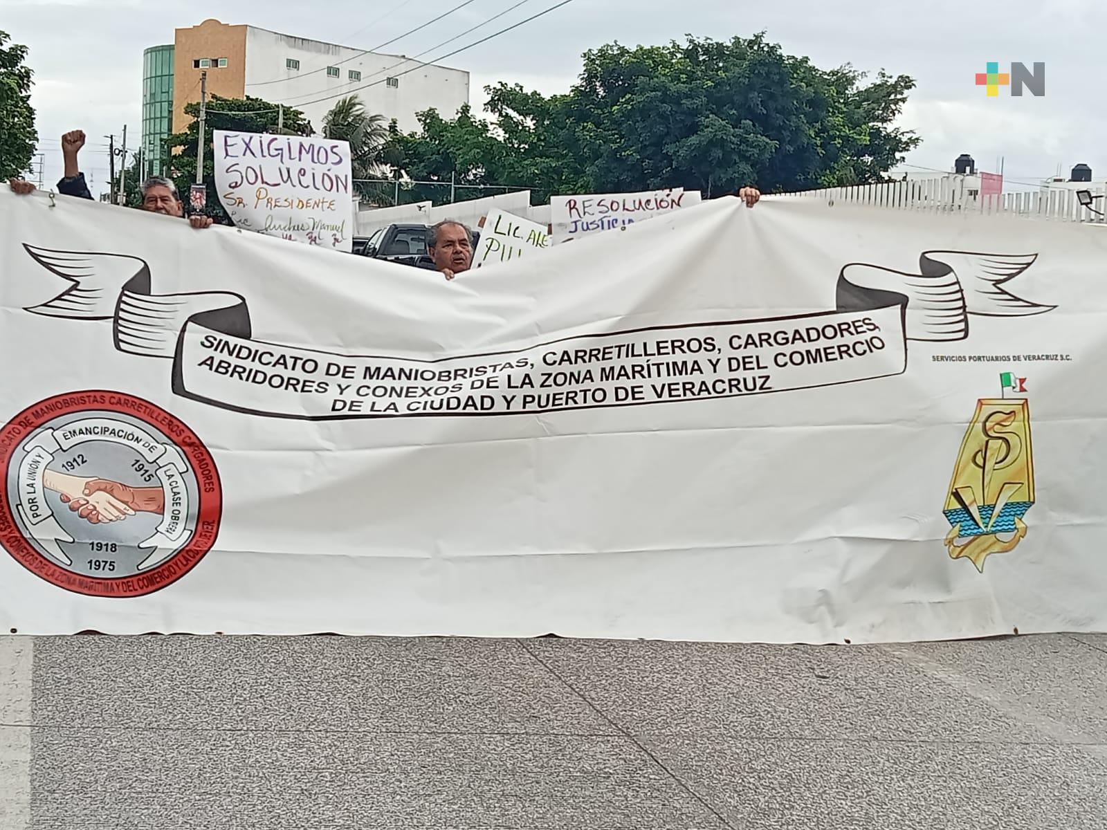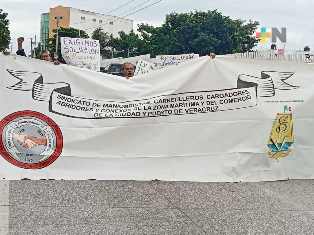 Extrabajadores portuarios se manifiestan en Veracruz puerto