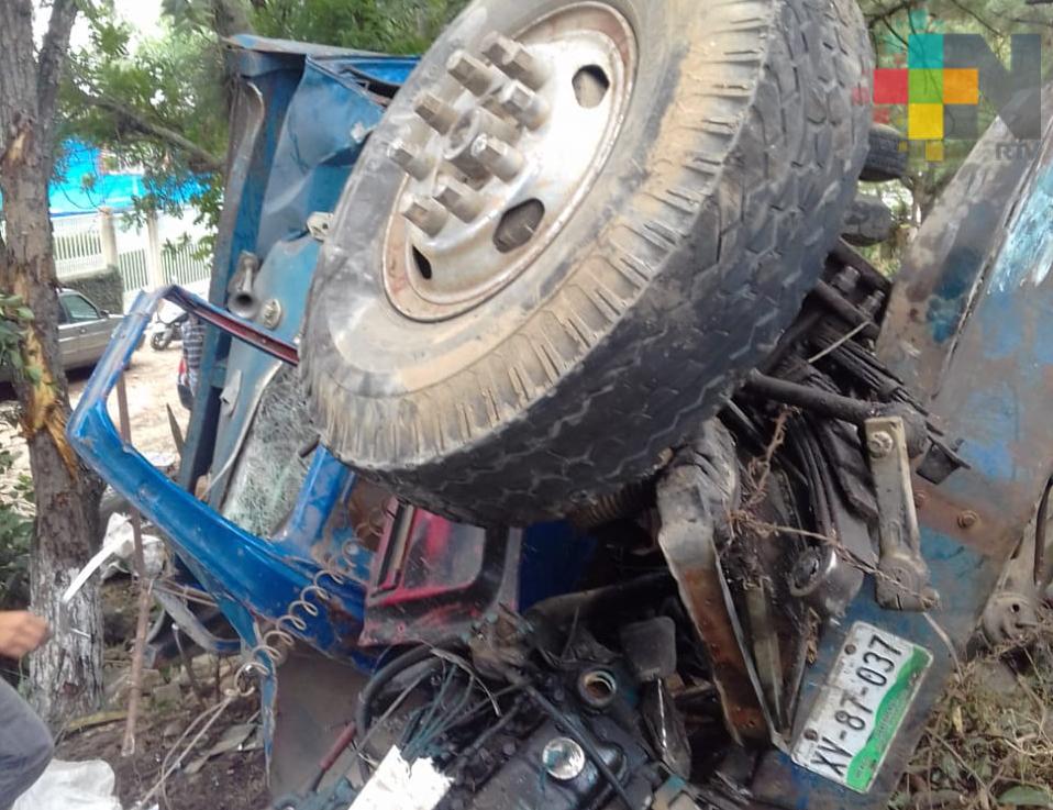 Xalapa, Ver.- Tras perder el control, el conductor de un camión materialista impactó su unidad contra un auto particular y posteriormente contra un poste de CFE para finalmente quedar llantas arriba y prácticamente destrozado metros adelante, en un área verde sobre la avenida Antonio Chedraui Caram, causando la muerte de José Antonio Amigon Jiménez, quien viajaba en el área de carga del camión y que salió proyectado tras la volcadura.