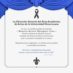 Xalapa, Ver.- La Dirección General de Área Académica de Artes de la Universidad Veracruzana lamentó el fallecimiento del maestro Arturo Meseguer Lima, quien fuera director general de Difusión Cultural.