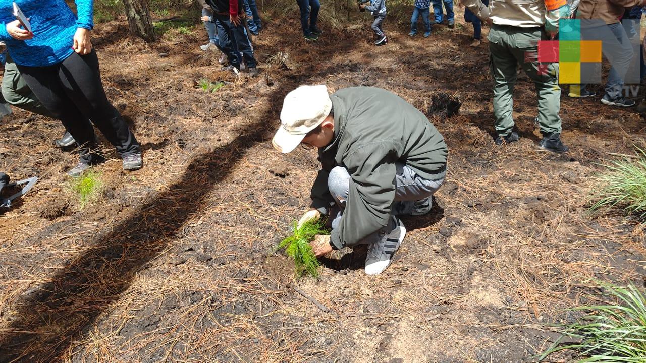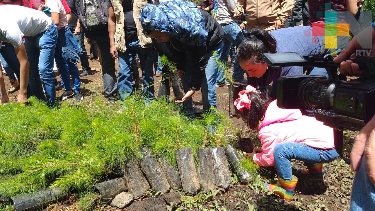Las Vigas.- Familias completas participaron este sábado en la reforestación de la reserva San Juan del Monte, en el municipio de Las Vigas de Ramírez.