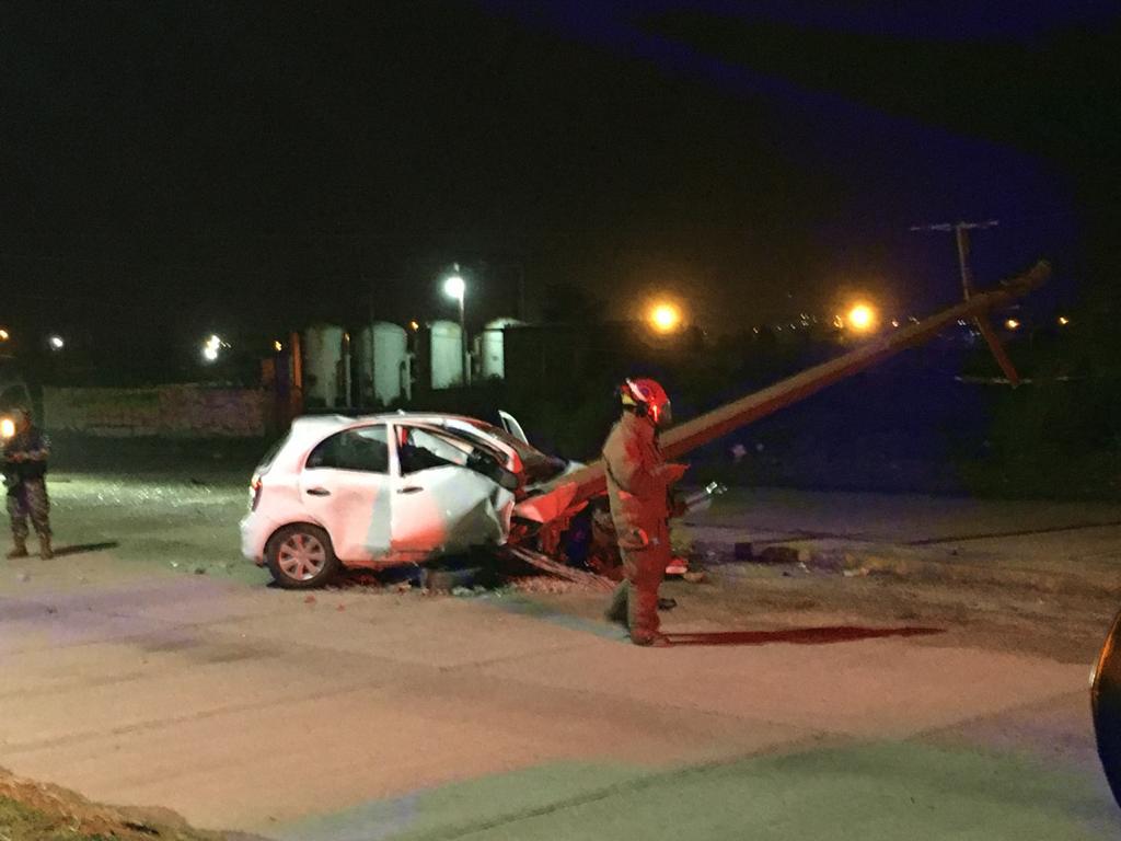 A la altura de la colonia Paraíso Las Dunas, el conductor del vehículo que transitaba a exceso de velocidad, chocó contra la banqueta lo que provocó que perdiera el control impactándose contra un poste de la Comisión Federal de Electricidad.