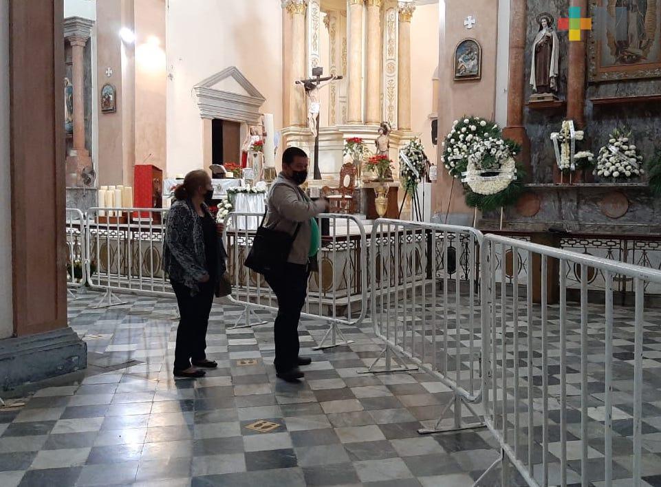 Veracruz, Ver.- Bajo medidas sanitarias para prevenir contagios de COVID-19, feligreses tuvieron oportunidad de despedir las cenizas del vocero de la Diócesis de Veracruz, padre Víctor Manuel Díaz Mendoza, quien falleció ayer jueves a consecuencia del coronavirus.