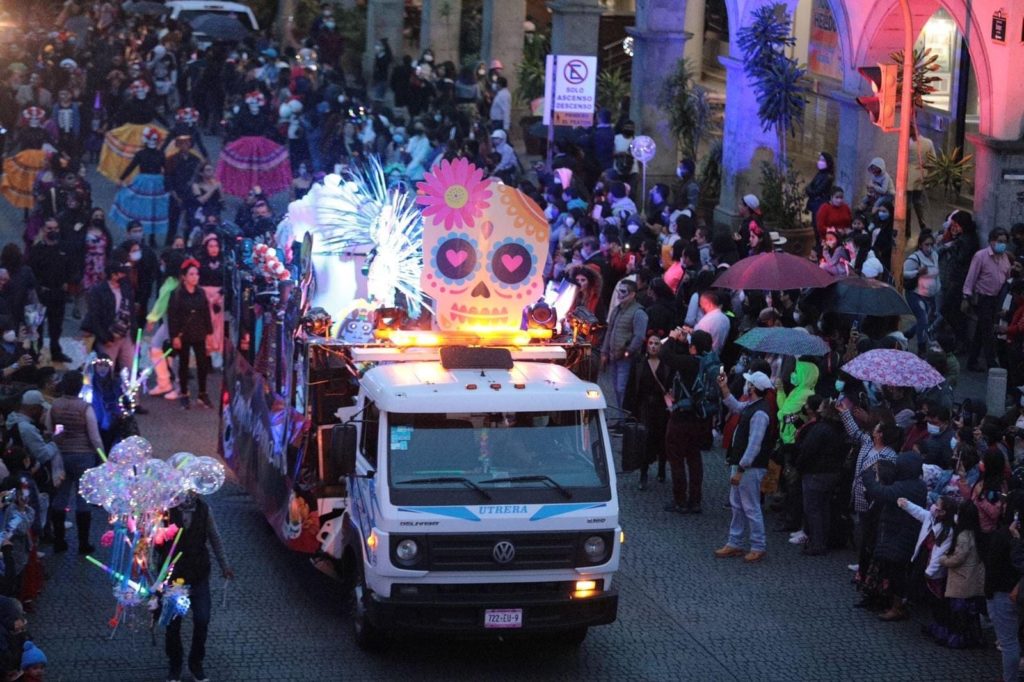 Catrinas, catrines y vistosas figuras típicas con mucho color, carros alegóricos y nuevos atractivos como los globos de Zozocolco, marcharon por el centro histórico de Xalapa en contingentes de todas las regiones de la entidad; en Plaza Lerdo se realizó la representación de la Fiesta de Xantolo, Muestra de Altares y la inauguración de la réplica del Panteón 5 de Febrero, la Expo “Pan de Muerto y Chocolate” y la presentación de la galería fotográfica “Catrinas Veracruzanas” en el corredor del Palacio de Gobierno.