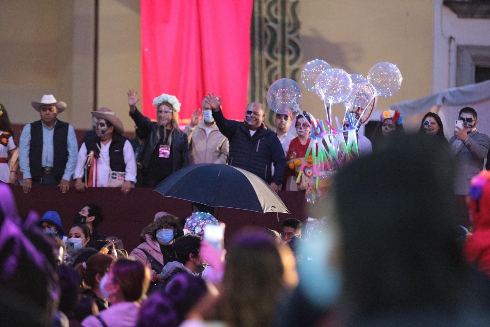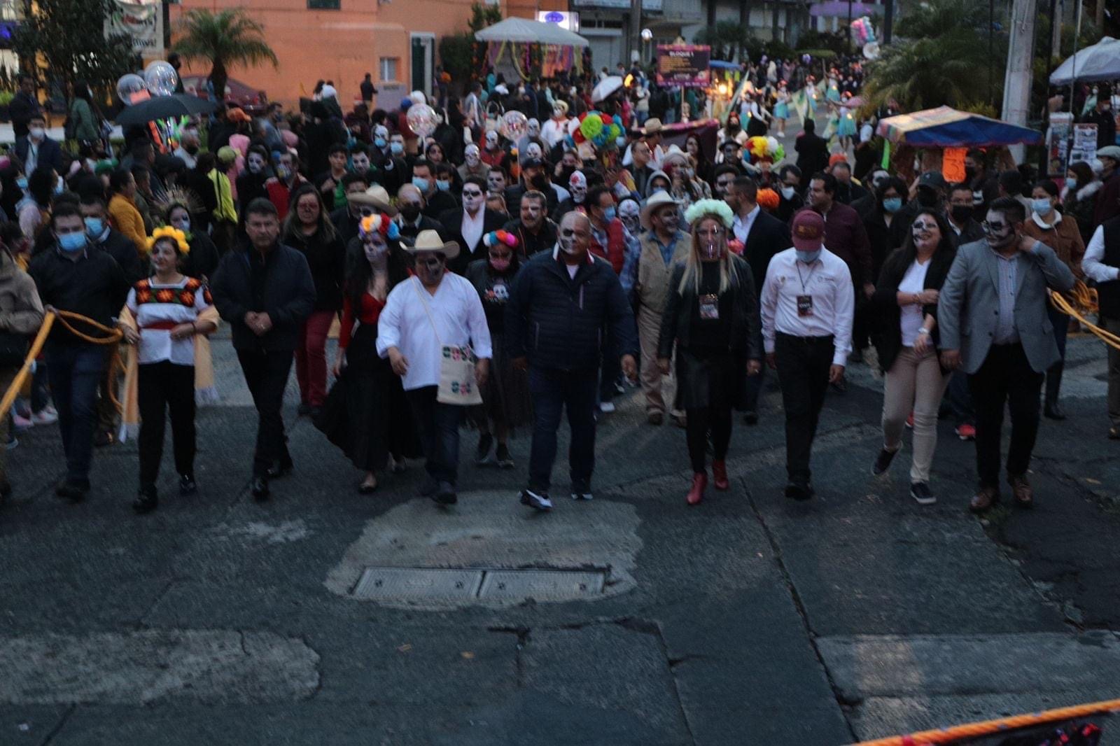 Catrinas, catrines y vistosas figuras típicas con mucho color, carros alegóricos y nuevos atractivos como los globos de Zozocolco, marcharon por el centro histórico de Xalapa en contingentes de todas las regiones de la entidad; en Plaza Lerdo se realizó la representación de la Fiesta de Xantolo, Muestra de Altares y la inauguración de la réplica del Panteón 5 de Febrero, la Expo “Pan de Muerto y Chocolate” y la presentación de la galería fotográfica “Catrinas Veracruzanas” en el corredor del Palacio de Gobierno.