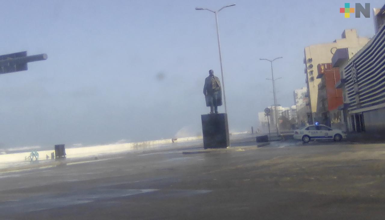 Ante el fuerte oleaje, la Dirección de Tránsito de Boca del Río cerró el bulevar Manuel Ávila Camacho, desde el cruce con Ruiz Cortines hasta la avenida Juan Pablo II, el cual seguirá el resto de la noche, hasta que el viento disminuya su intensidad.