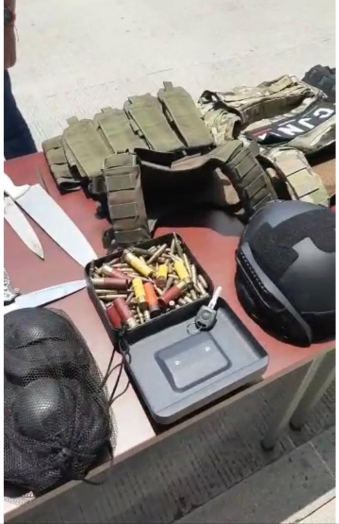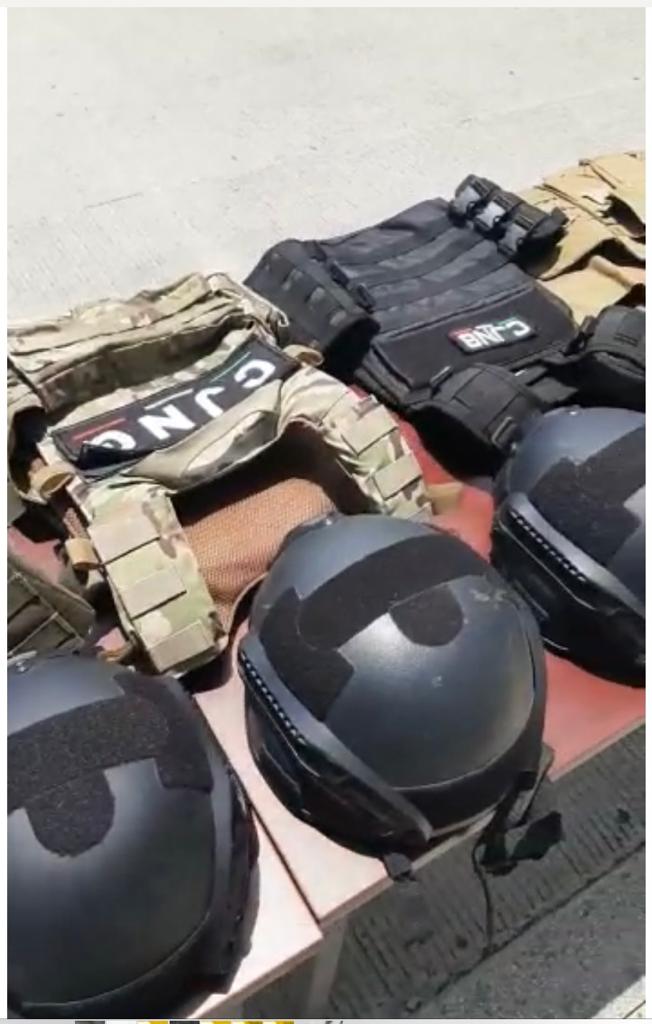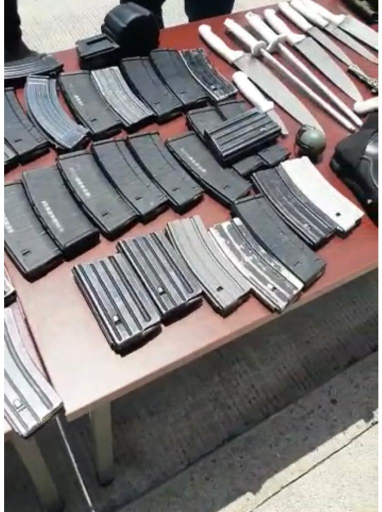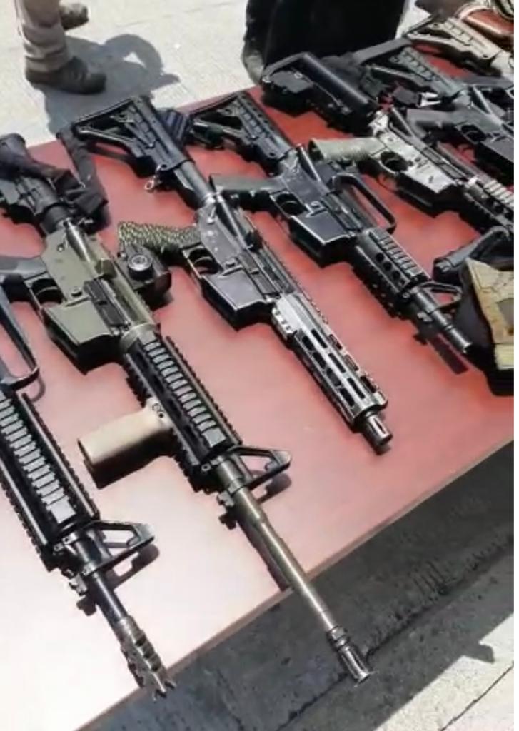 En la realización de estos cateos, los elementos de la UECS contaron con apoyo perimetral de Policía Ministerial, Ejército Mexicano y Guardia Nacional; durante estos trabajos se suscitaron otros hechos delictivos, donde fueron intervenidos 9 presuntos delincuentes en el momento en que agredían a las fuerzas del orden, quienes fueron presentados ante el juez de control, respetando el debido proceso y sus derechos humanos. Se aseguraron los siguientes objetos: ocho armas largas, una granada de fragmentación, equipo táctico como playeras operativas, chalecos antibalas, cascos operativos, insignias CJNG, equipos de radiocomunicación, droga, utensilios punzocortantes y un vehículo camioneta.