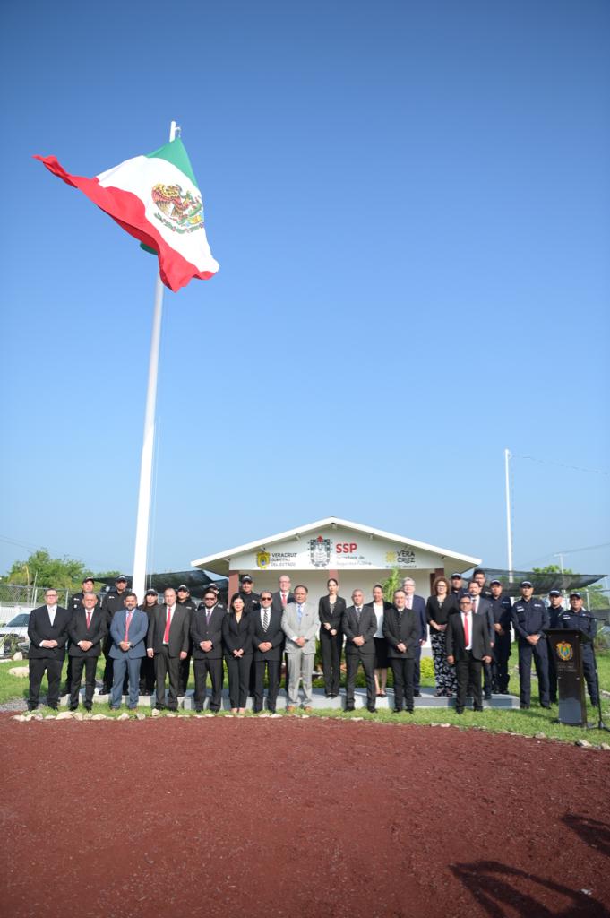 Xalapa, Ver.- En las instalaciones del módulo de la Secretaría de Seguridad Pública, ubicado en la localidad Tamarindo, del municipio de Puente Nacional, la Fiscal General del Estado, Verónica Hernández Giadáns, encabezó la ceremonia cívica de honores a la bandera, que organiza la Coordinación de Difusión, Promoción de los Valores Cívicos y Culturales, dependiente de la Secretaría de Gobierno.
