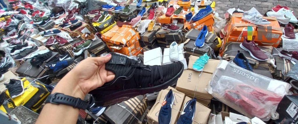 Los objetos del delito que se destruyeron fueron 31 mil 148 medios de grabación en formato de CD y DVD, así como cuatro mil 469 piezas de tenis apócrifos.
