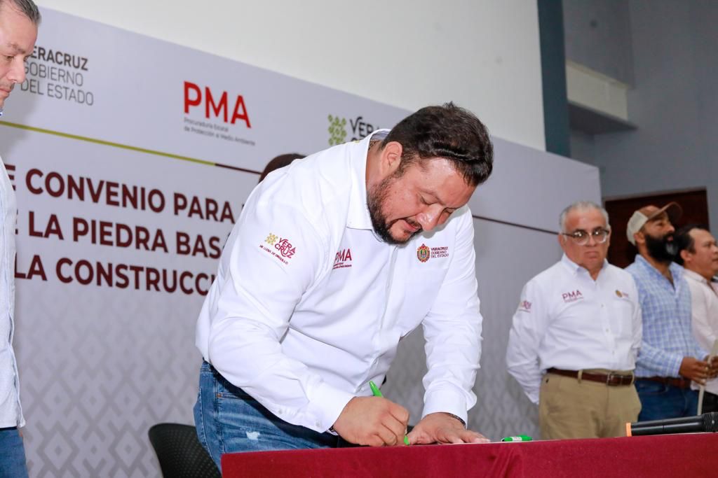 Boca del Río, Ver.- La Procuraduría Estatal de Protección al Medio Ambiente (PMA), firmó un convenio de colaboración para la gestión sustentable de piedra basáltica destinada a la construcción del Tren Maya, una de las obras más emblemáticas del presidente Andrés Manuel López Obrador.