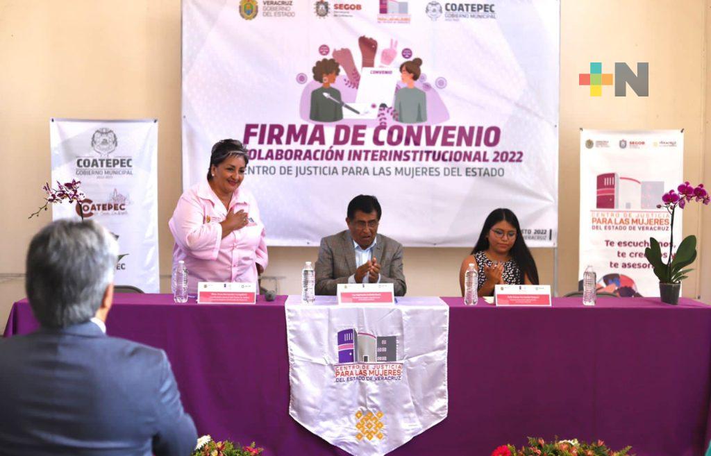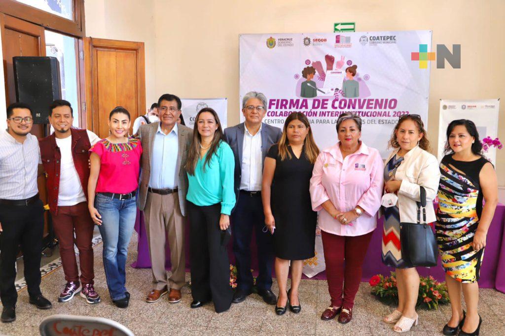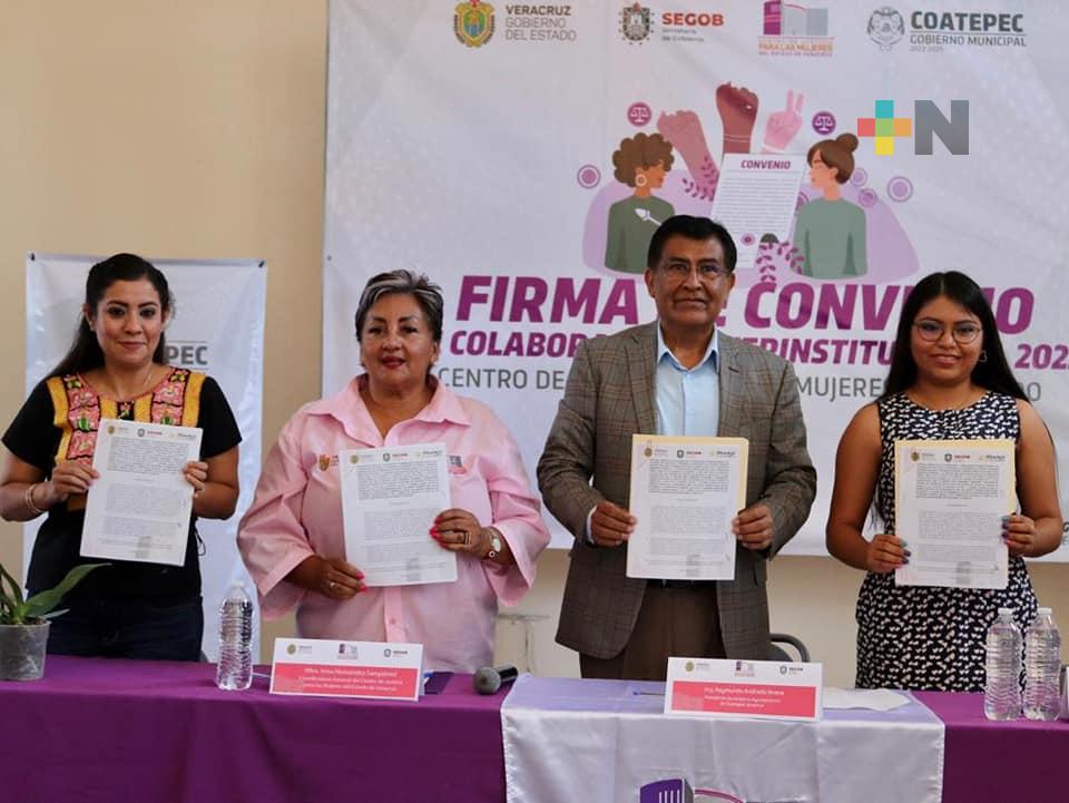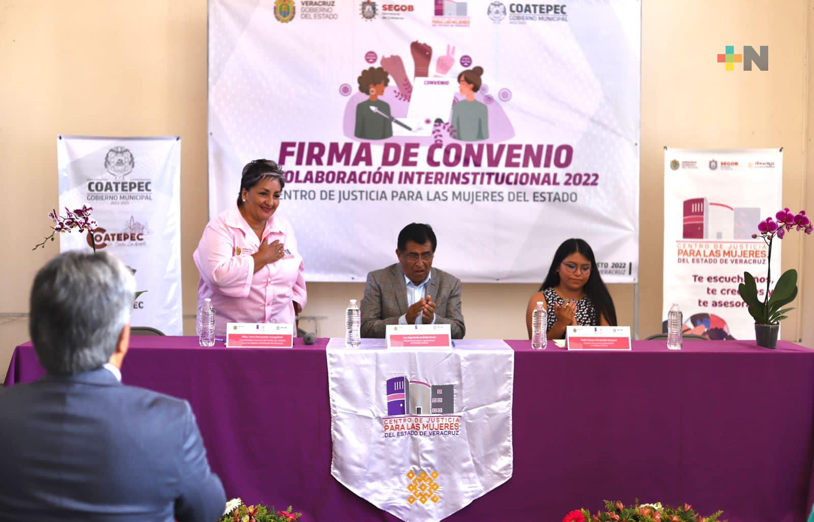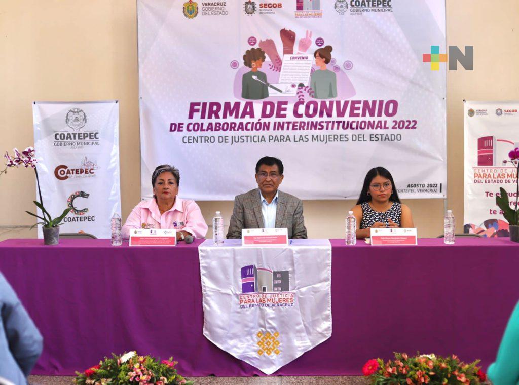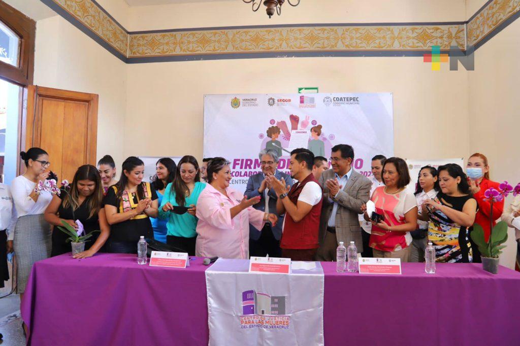 Coatepec, Ver.- El Centro Integral de Justicia para las Mujeres del Estado de Veracruz (Cejum) y el Ayuntamiento de Coatepec, realizaron la firma de convenio específico de colaboración y coordinación institucional para prevenir y erradicar la violencia contra las mujeres.