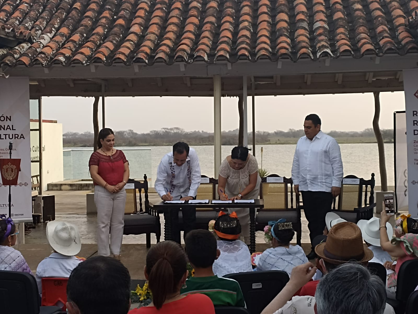 Tlacotalpan, Ver.- En el marco de la Reunión Regional de Cultura de la zona sur del país que de celebra en el municipio de Tlacotalpan, el gobernador del estado, Cuitláhuac García Jiménez, firmó un convenio de colaboración con la Secretaria de Cultura, Alejandra Fraustro, para impulsar iniciativas que alienten el desarrollo de las artes en niños, niñas y adolescentes.