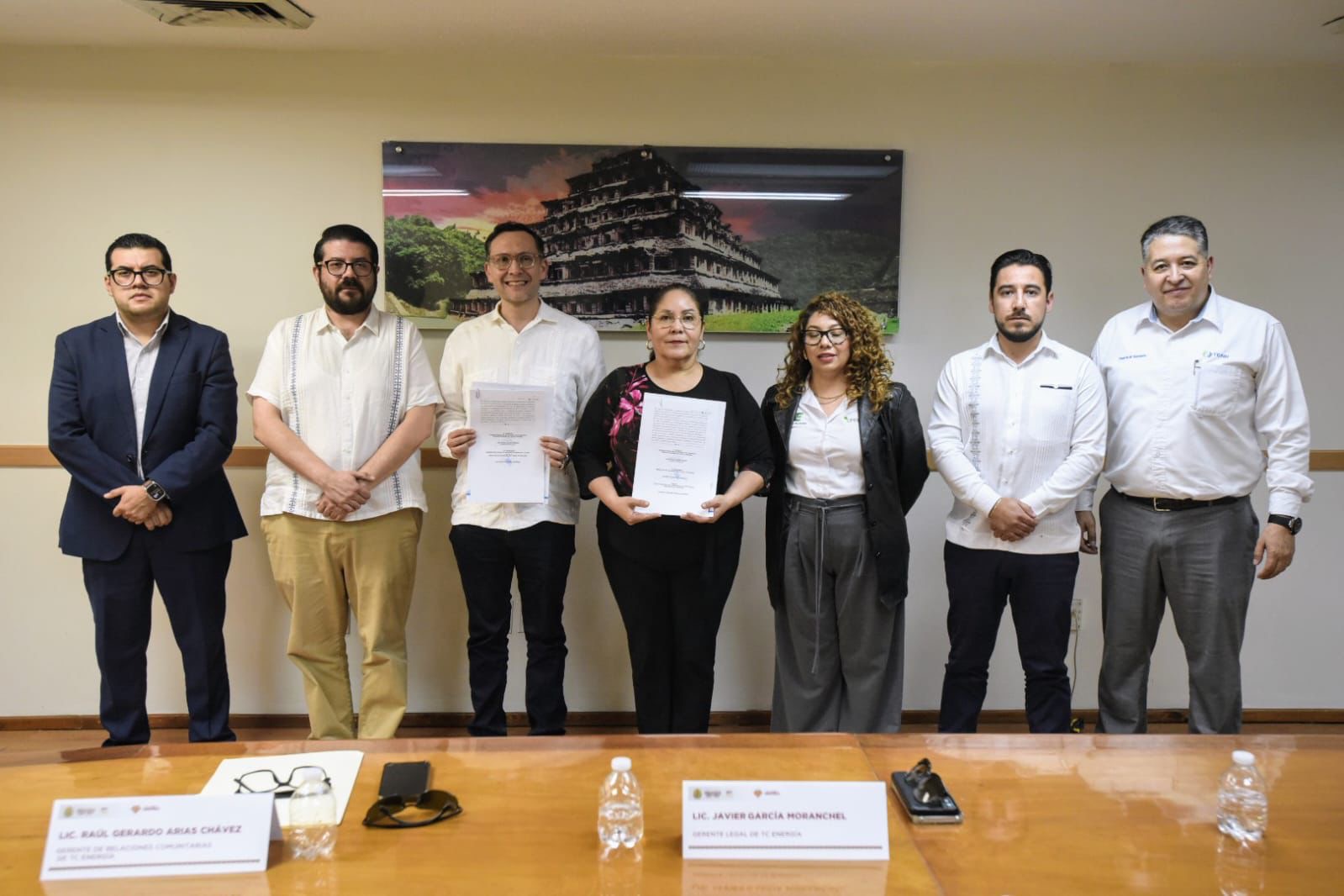 En la firma también participaron representantes de ambas instituciones, entre ellos el oficial Mayor de la SEV; el director Jurídico; y personal de Asuntos Corporativos y Relaciones Comunitarias de TC Energía.
