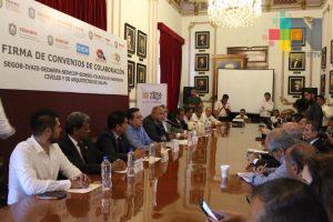Esta tarde, los titulares de estas dependencias estatales y del Instituto Veracruzano de Asuntos Indígenas y Colegios de Notarios y de Arquitectos de Xalapa signaron este compromiso en Palacio de Gobierno donde estuvo presente el Secretario de Gobierno.