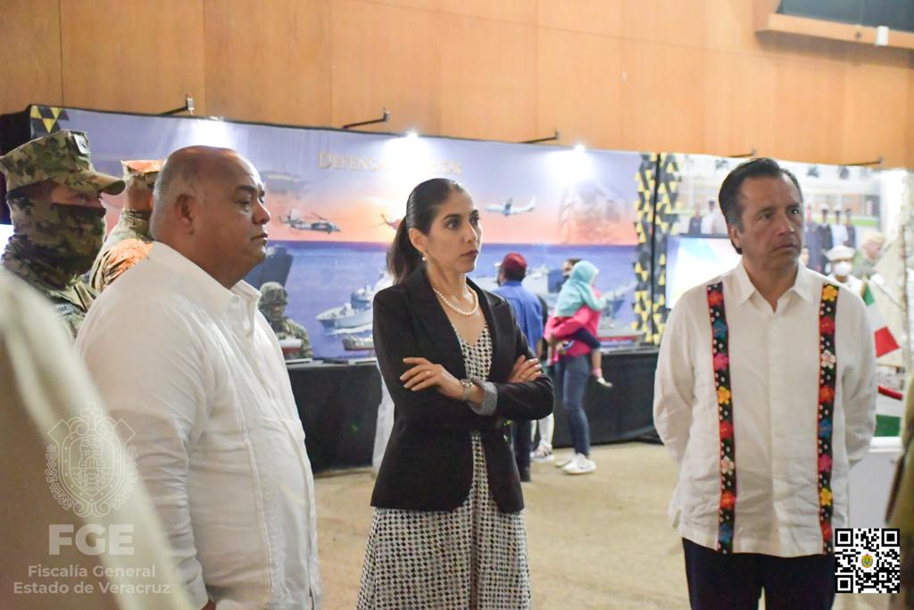 En el Centro de Convenciones de Coatzacoalcos, la Fiscal General del Estado, Verónica Hernández Giadáns, asistió con el Gobernador Cuitláhuac García Jiménez y el Secretario de Gobierno, Eric Cisneros Burgos, a la muestra “EXPOMAR 2022”, instalada como parte de las actividades realizadas por el LXXX Aniversario del Día de la Marina Nacional y en el marco de los 500 años de la creación del Puerto de Coatzacoalcos.