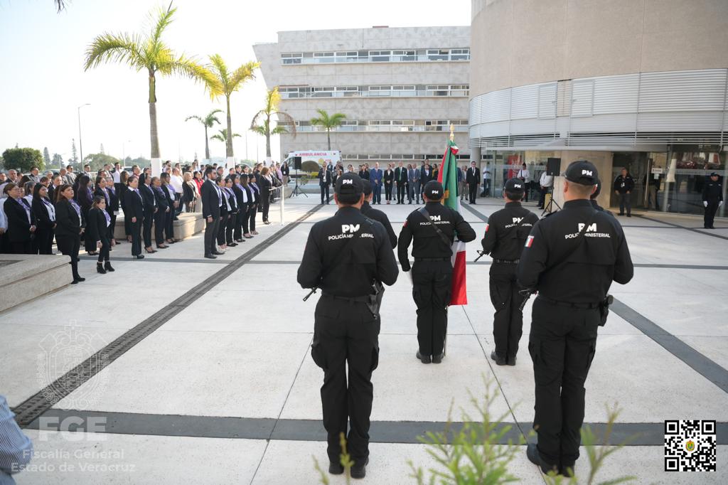 Xalapa, Ver.- En la explanada de las oficinas centrales de la Fiscalía General del Estado, se llevó a cabo la ceremonia de honores a la bandera encabezada por la Fiscal General del Estado, Verónica Hernández Giadáns, con la asistencia de servidoras y servidores públicos del organismo autónomo.