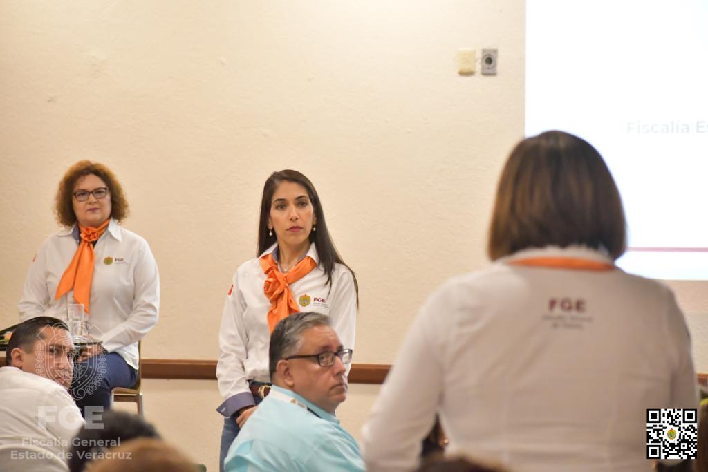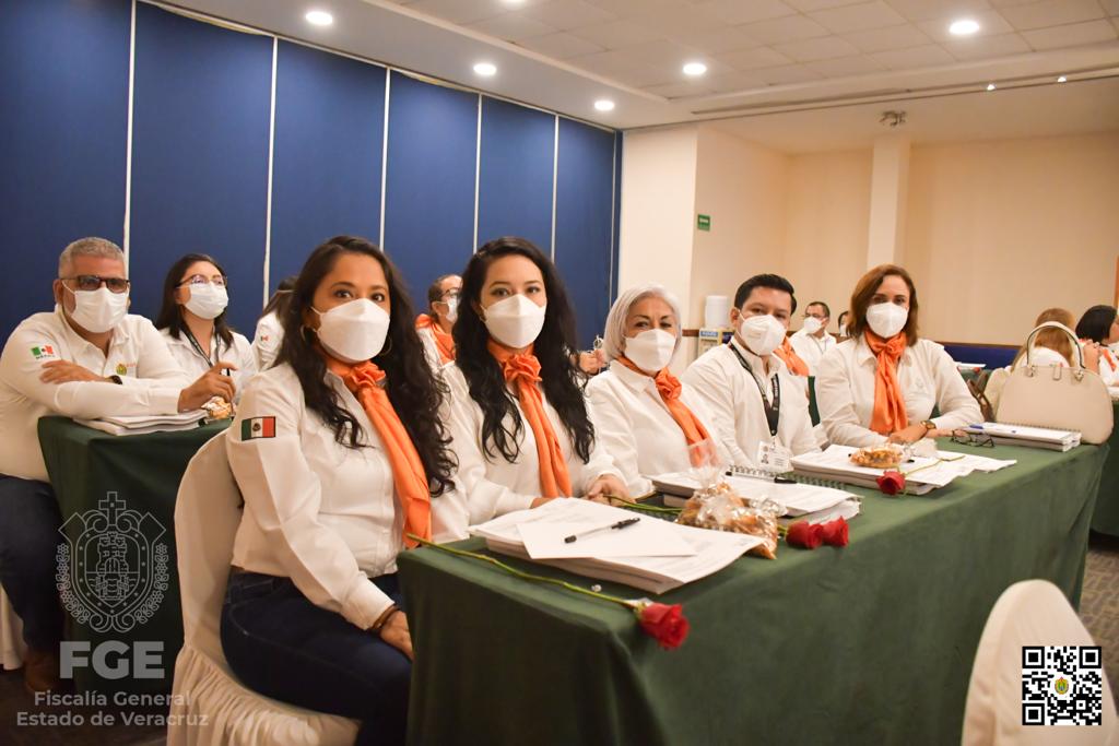 Xalapa, Ver.-En un ambiente de sororidad y camaradería, la  Fiscal General del Estado, Verónica Hernández Giadáns, sostuvo reunión de trabajo con las y los 87 Fiscales Especializados que integran la Fiscalía Especializada en Investigación de Delitos de Violencia contra la Familia, Mujeres, Niñas y Niños y Trata de Personas en todo el estado, con la presencia de los siete Fiscales Regionales, la Fiscal Especializada en Asuntos Indígenas y Derechos Humanos, el Fiscal Coordinador de Fiscales Auxiliares de la Fiscal General y los Directores Generales de la Policía Ministerial, Unidad Especializada en Combate al Secuestro y de los Servicios Periciales.
