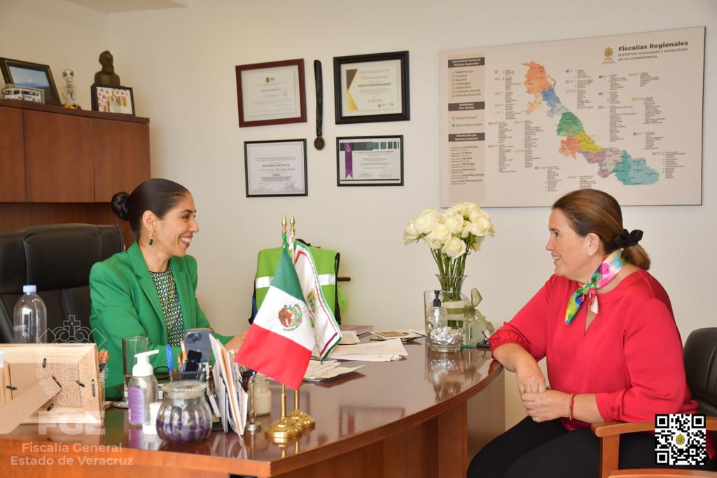 Xalapa, Ver.-La Fiscal General del Estado, Verónica Hernández Giadáns, sostuvo reunión de trabajo con la Diputada Presidenta de la Mesa Directiva del Congreso Local, Cecilia Josefina Guevara Guembe, con el objetivo de reforzar la coordinación permanente entre ambas instituciones.