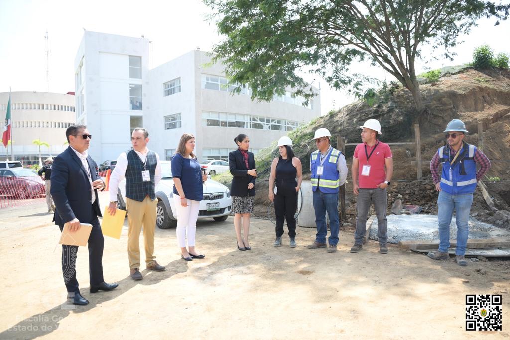 Xalapa, Ver.- La Fiscal General del Estado, Verónica Hernández Giadáns, realizó un recorrido de supervisión a la obra de la primera etapa de construcción de la bodega de indicios en oficinas centrales, acompañada por el Oficial Mayor, Jorge Raymundo Romero de la Maza.
