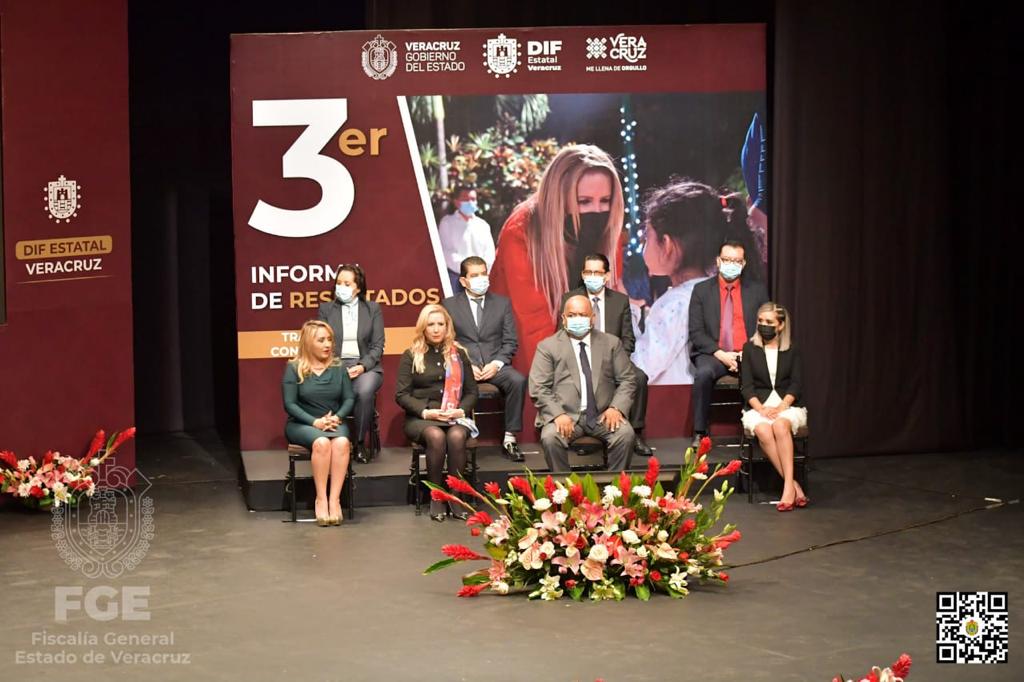 Xalapa, Ver.- La Fiscal General del Estado, Verónica Hernández Giadáns, asistió como invitada especial al tercer informe de labores de la Directora General del Sistema para el Desarrollo Integral de la Familia del Estado de Veracruz, Rebeca Quintanar Barceló, en la sala “Emilio Carballido” del Teatro del Estado.