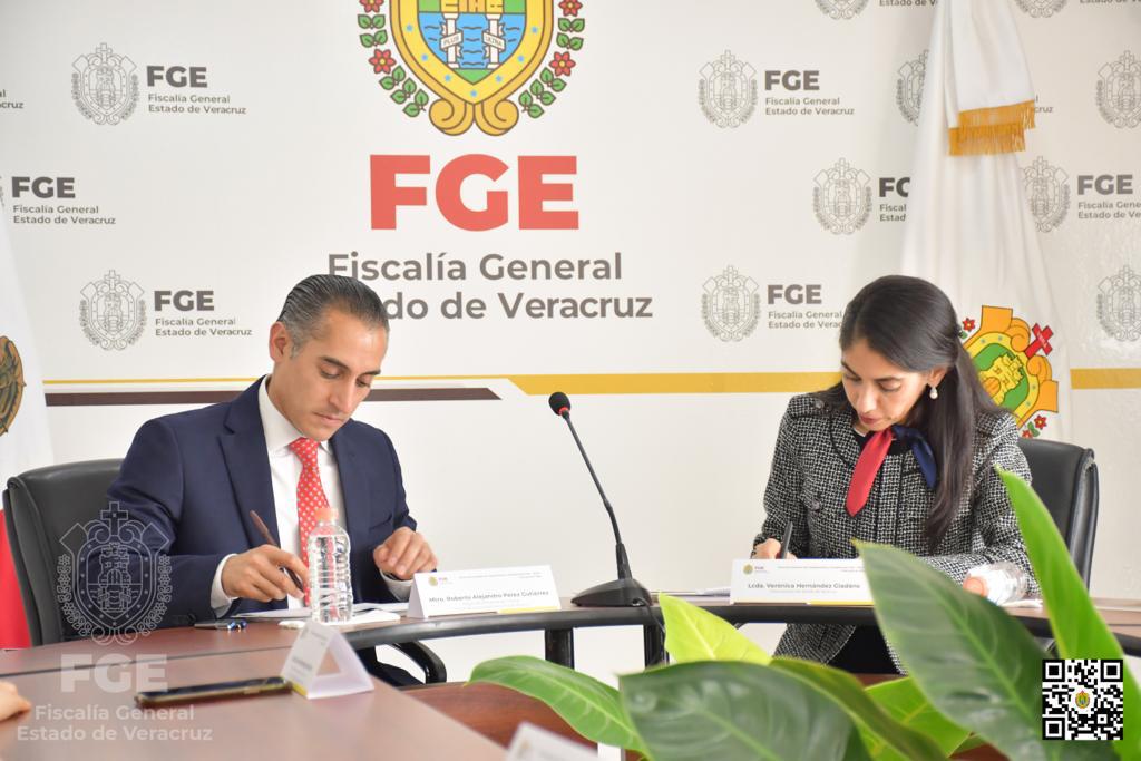 La Fiscal General del Estado, Verónica Hernández Giadáns, encabezó el acto protocolario de la firma del convenio de colaboración en materia de servicios digitales, entre el organismo autónomo y el Tribunal Estatal de Justicia Administrativa de Veracruz, representado por el Magistrado Presidente Roberto Alejandro Pérez Gutiérrez.