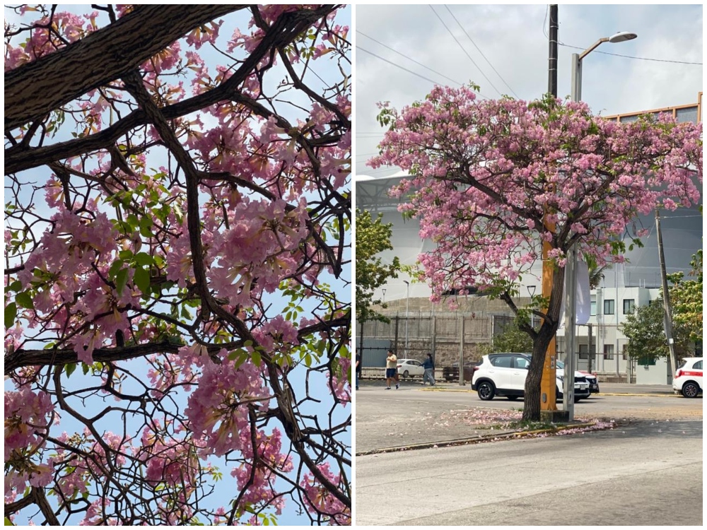 Color de rosa. Así lucen las calles veracruzanas cuando el roble entra en su temporada. La ciudadanía los observa fascinadas por sus pétalos, esperados durante meses, que florecen intensamente, pero caen rápido, dejando al árbol sin follaje.