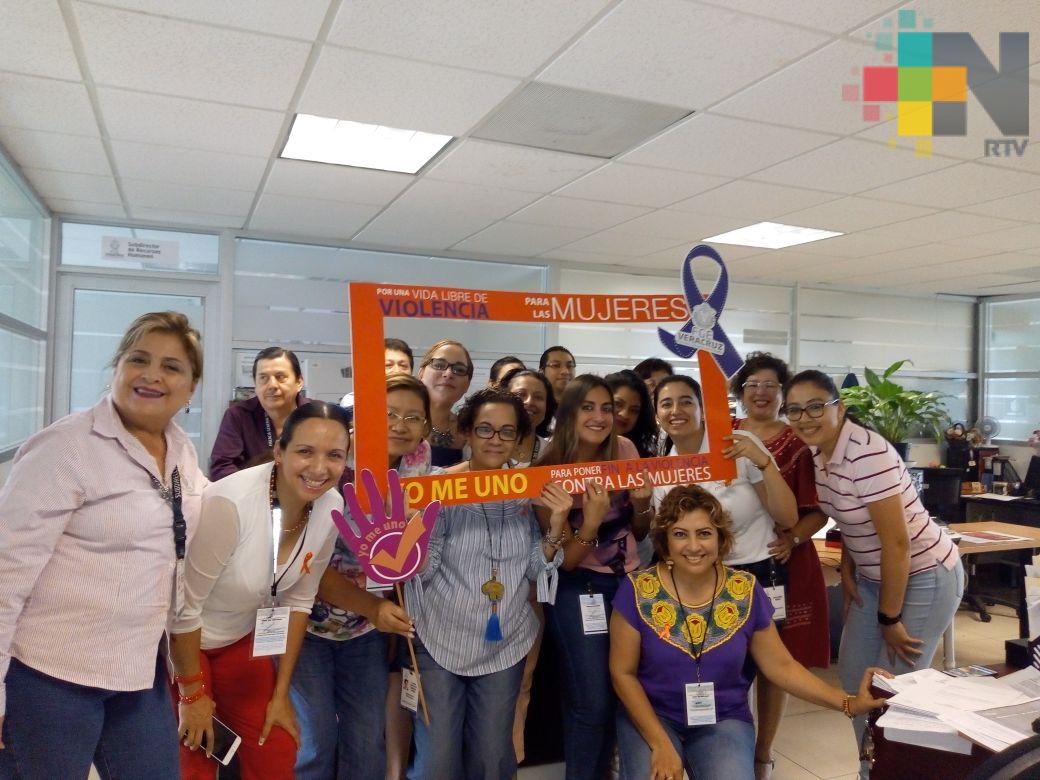 Xalapa, Ver.- Como parte de las acciones para dar respuesta a las declaratorias de Alerta de Violencia de Género contra las Mujeres por Violencia Feminicida y por Agravio Comparado, la Fiscalía General del Estado (FGE) a través de la Unidad de Género realizó una jornada de concientización, sumándose a las acciones del Día Naranja, instaurado por la Organización de las Naciones Unidas (ONU).