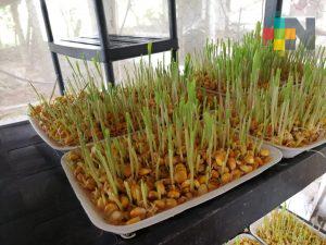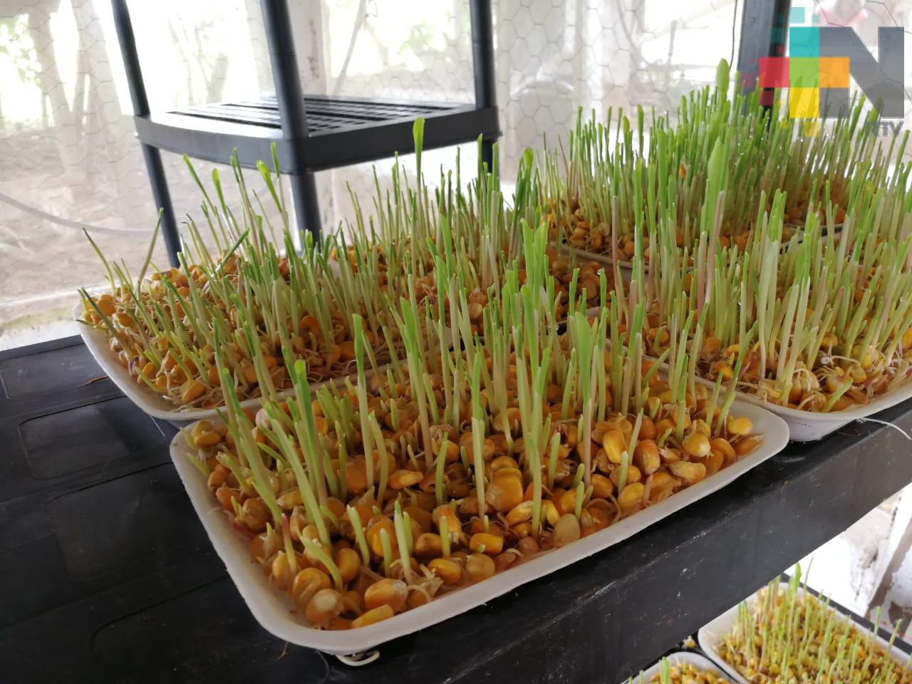 “Es una técnica que tenemos para alimentar al ganado gracias a germinados que es de maíz amarillo y que tiene 20 por ciento de proteína, ustedes con un germinado de maíz pueden generar hasta 8 kilogramos de forraje hidropónico”.