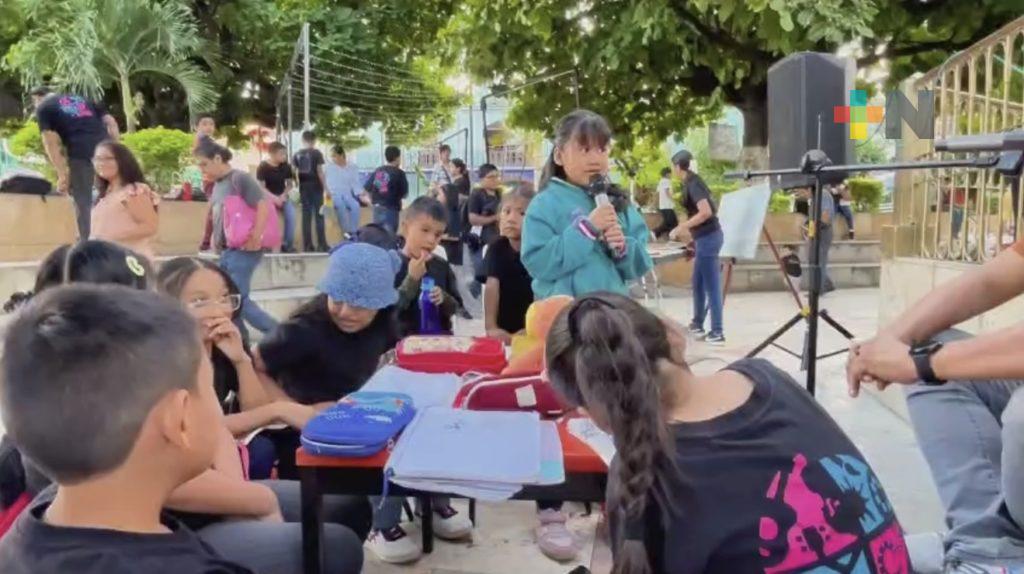 Huasteca, Ver.- Pequeños y jóvenes promueven los valores a través de la lectura didáctica que aprenden en los talleres gratuitos que se brindan en el municipio de Tantoyuca, participando en distintas actividades al aire libre y en espacios públicos.