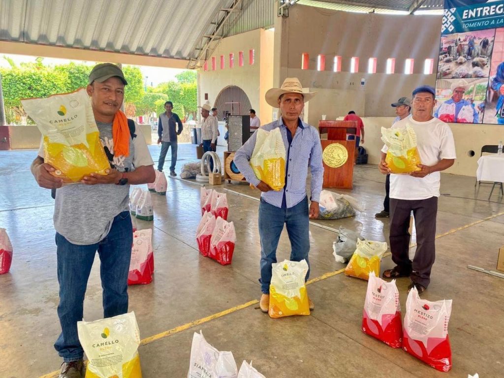 ¡Más apoyos directos a los productores! Con el programa “Fomento a la Ganadería Sustentable con Integración de Cadenas de Valor”, se hizo entrega de semilla de pasto (camello, mestizo, mulato II 560 y siambasa CV Mombasa) y cercos eléctricos a productores de 34 localidades pertenecientes a 7 municipios (Benito Juárez, Huayacocotla, Ixhuatlán de Madero, Texcatepec, Tlachichilco, Zacualpan y Zontecomatlán) de la Huasteca Baja.