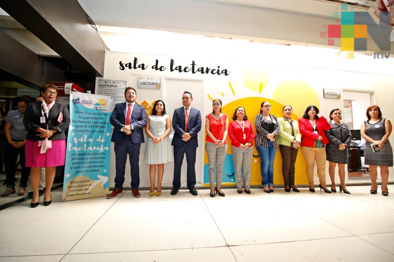 Xalapa, Ver.- La Secretaría de Finanzas y Planeación (Sefiplan), a través de la Unidad de Género, amplió la Sala de Lactancia para dar servicio tanto a las madres trabajadoras de la dependencia, como a visitantes y contribuyentes que acudan al edificio.