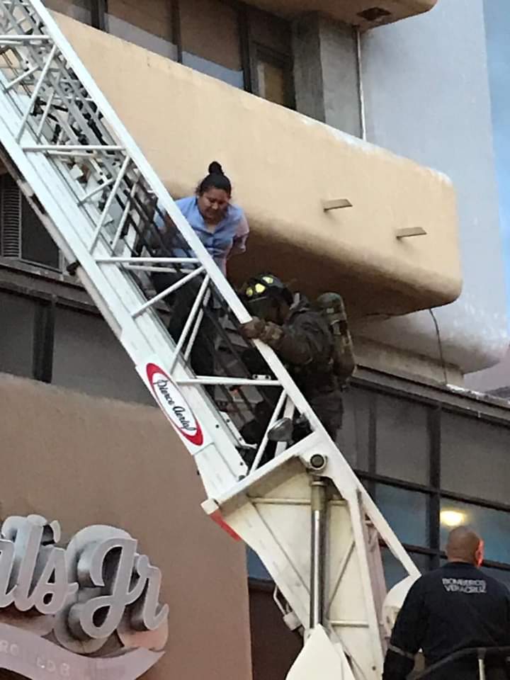 También fue evacuado personal de la Catedral de Veracruz y una mujer fue rescatada del edificio en llamas, la fémina fue atendida y todo indica que no sufrió lesiones de consideración.